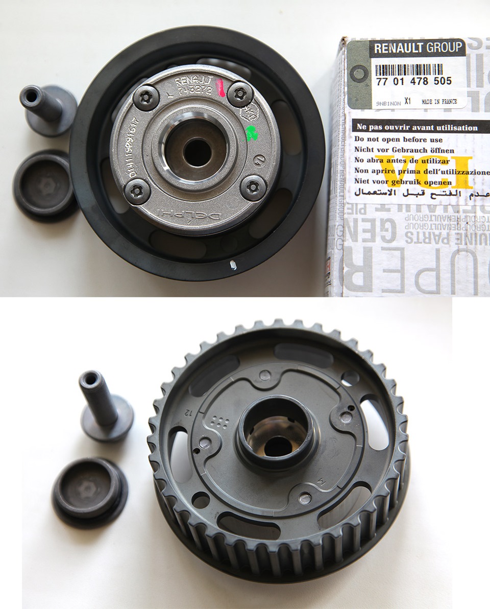 В одно прекрасное утро собирался я ехать в Минск, но почему-то машина вдруг не завелась… Мягко говоря я был удивлен. Поехал в итоге автостопом, но проблема естественно требовала решения. Раньше, начитавшись про фазорегуляторы и их клапаны на этих моделях, я по звуку мотора начинал думать, что он слегка напоминает дизель, но это было необоснованно… а теперь причина мне казалась очевидной. Для начала я пригласил автоэлектрика для диагностики, но он ничего не нашел, а когда попробовали завести, то появился запах гари и я решил не мучить машину и отбуксировать на СТО. Заказал в запчастях новый комплект ремня ГРМ (SKF VKMA 06021 — 67$) и фазорегулятор (77 01 478 505 — 100$) и надеялся, что мне смогут все сделать без косяков…