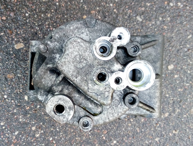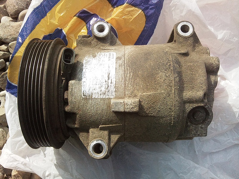 Ну в общем после установки генератора мне на СТО отдали машину, я её завожу, а она как-то сразу глохнет, будто её душит что-то! Восторга было мало, а один парень с СТО решил завести сам. Завел, газует со словами «Да ты что, не умеешь заводить?» и в это время повалил дым. Другой глянул в тот момент на источник дыма и по его словам подшипник чуть не красный был от нагрева… В общем эти ребята с чистой совестью подключили фишку компрессора, не подумав, что раз она отключена, то не просто так. Слава Богу последствий, как когда-то с проскочившим на зубе ремнем, удалось избежать, но я понял, что этот компрессор все же пора менять. Можно сказать удачно нашел на разборке в соседнем городке эту штуку и на глаз определив, что он идентичен моему по всем креплениям и отверстиям, выложил 80$.
