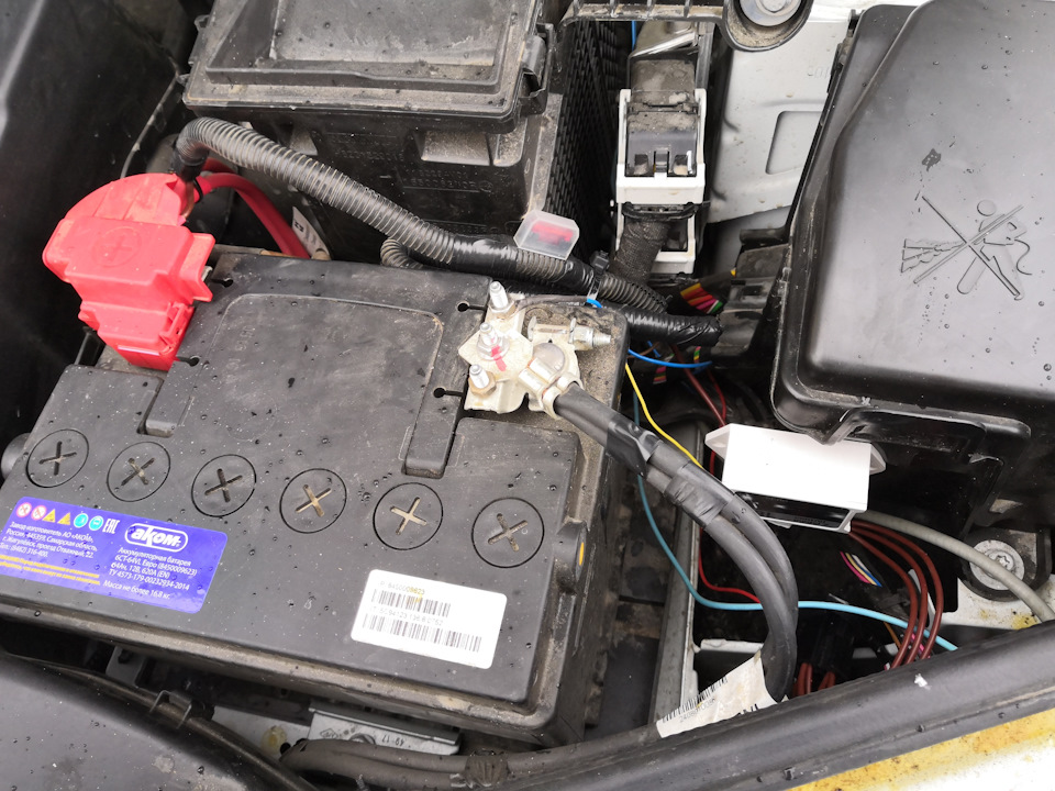 - Остается плюсовой кабель, его необходимо подключить к реле зажигания.