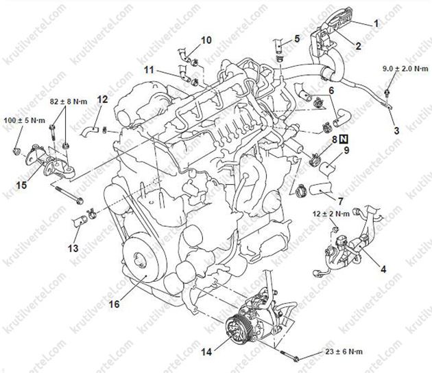 *100 ± 5 Н·м 82 ± 8 Н·м 9,0 ± 2,0 Н·м 12 ± 2 Н·м 23 ± 6 Н·м*